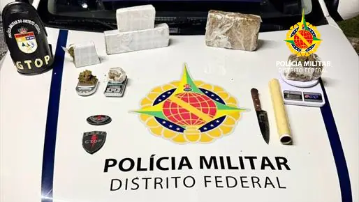 Ao verificar o apartamento do indivíduo, na Quadra 34, os policiais localizaram o restante do material ilícito. Na ação, foram apreendidas uma barra de maconha, uma barra de skunk, três pedaços grandes de maconha, duas porções pequenas de skunk e uma porção pequena de maconha. Além das drogas, as equipes apreenderam três balanças de precisão, um rolo de papel insulfilm, um celular e uma faca utilizados na atividade criminosa.